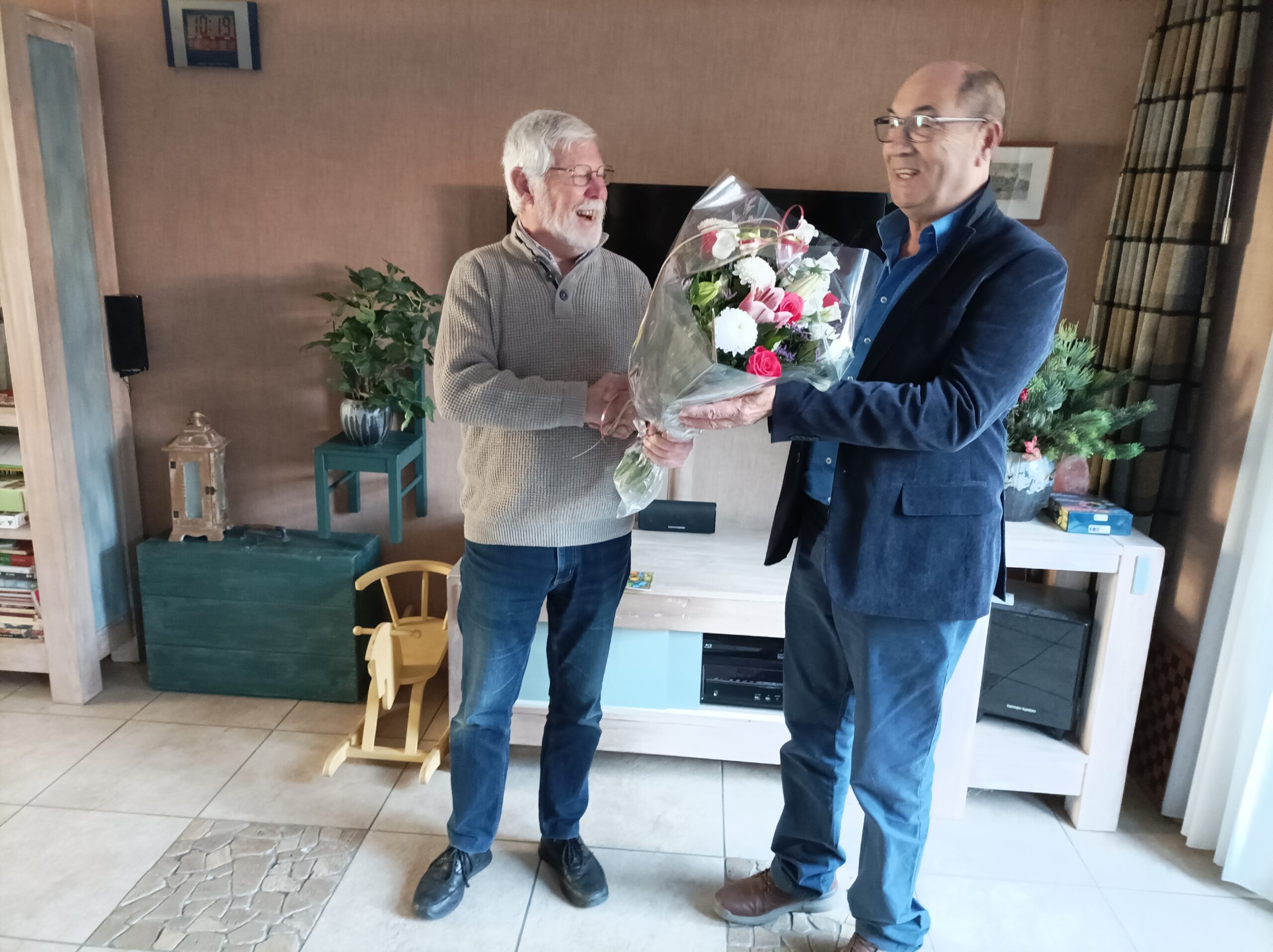 Frans is Regio Contact Persoon voor Regio 53 en dus toog Piet Turfboer als RCP-er van Regio 54 naar Rotterdam voor de felicitaties en de overhandiging van een boeket namens de leden van de VG-ANWB.