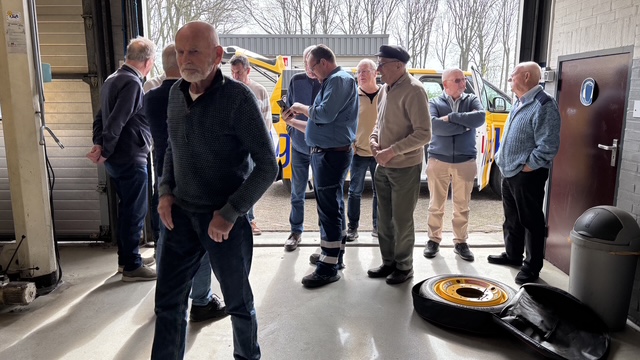 De heren/dames vertrokken na de koffie voor uitleg over de elektrische wegenwacht bus naar de garage.